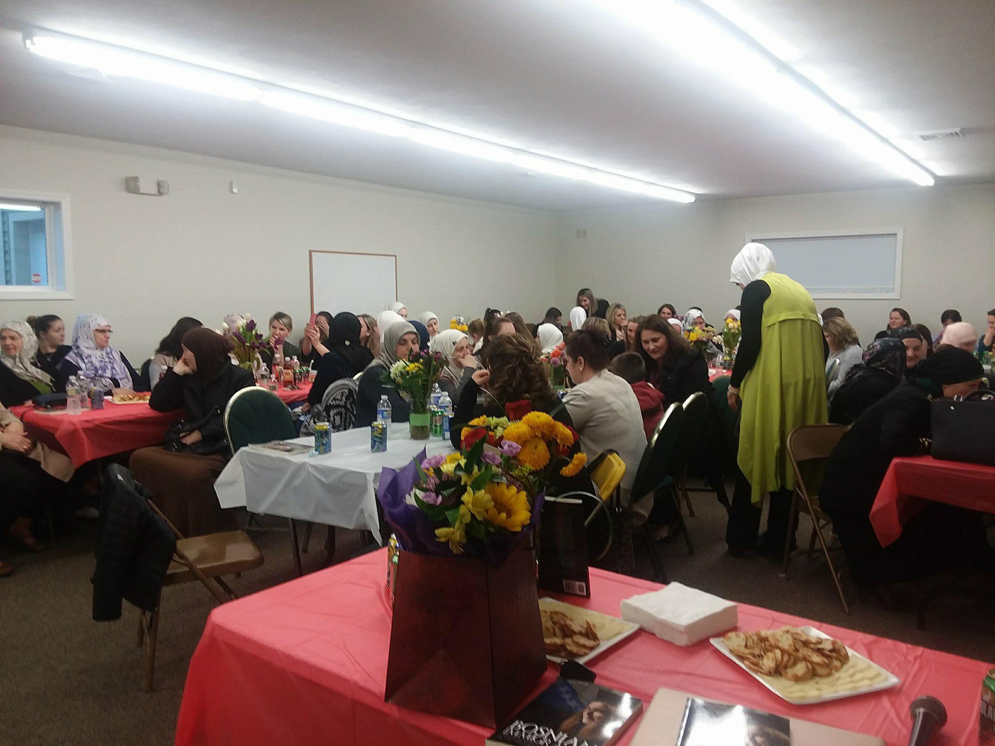 Bošnjakinje džemata Syracuse, grada koji se nalazi na sjeveroistočnom dijelu Sjedinjenih Američkih Država, savezne američke države New York, na čelu sa muallimom Lejlom Neimarlijom, organizirale su i priredile mi divan doček. Sve je bilo perfektno i do najmanjeg detalja osmišljeno i veoma srdačno, organizirano u duhu naših Bošnjakinja te njihovih zavidnih sposobnosti i kreativnih kvaliteta. Pri samom ulasku u salu, prizor kojeg sam vidjela prosto me je ostavio bez daha: prekrasno ukrašena sala svježim i raznobojim tulipanima, kao i drugim raznolikim cvijećem. Sala punu lijepih Bošnjakinja, svih uzrasta i godina i iz svih krajeva Bosne i Herzegovine! Ambijent kojeg svaki govornik želi imati prilikom svog govora ili promocije knjige.